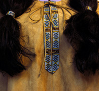 Ein aus Waschleder erarbeitetes Indianerkleid. Die Borde wurde passend zur
