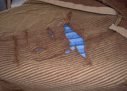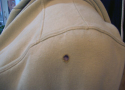 Hier hat sich die Kundin ein Brandloch eingefangen, an ihrem Lieblingsstück.