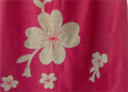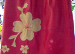 Hier wurden mehrere Ätzflecke auf einen Lederrock mit einer weiteren Lederblume