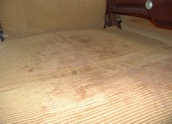 Zwei Speermüll-Flugzeugsitze, ganz zerrissen, wurden unterlegt und gestopft.