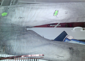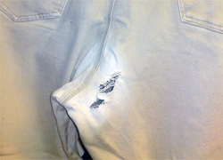 Risse im Schritt einer Hose wurde unterlegt und verstärkt.